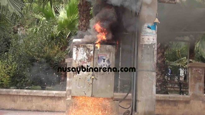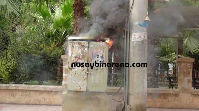 Nusaybin ilçesinde sık sık elektrik voltajların dalgalanması nedeniyle Yeni Turan mahallesi Lozan cadde üzeri Demokrasi parkı önündeki elektrik trafosunun panosu bomba gibi ard arda patladı.Patlamayı duyan vatandaş cadde üzerine gelerek trafonun patlamasını izledi.Vatandaşın DEDAŞ’a haber verilmesi üzerine elektrik kesilerek kesildi.İtfaiye ekipleri trafodaki yangına müdahale ederek söndürdü.Çıkan yangında elektrik panosu tamamen yandı.Vatandaş elektriksiz kaldı.Trafonun onarımı ise ancak 5 saate biteceği öğrenildi.-Haber-Ahmet Akkuş