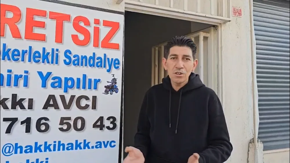 “Bu dükkânı, Esnaf ve Sanatkârlar Odası Başkanı Ömer Özel’in babasının dükkânı olarak bana tahsis etti. Sağ olsun, bu iş yerini bana verdi. Ben de burada engellilerin akülü tekerlekli sandalyelerinin ücretsiz tamirini yapıyorum. Daha önce cami avlularında, okul bahçelerinde, sokaklarda; neresi uygunsa orayı atölye yapıyordum. Allah Ömer Özel'den razı olsun, babasının dükkânını bana verdi, ben de burada çalışıyorum. Yaz sıcağı ve soğuk kış ortamından kurtuldum.”