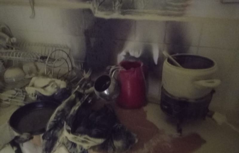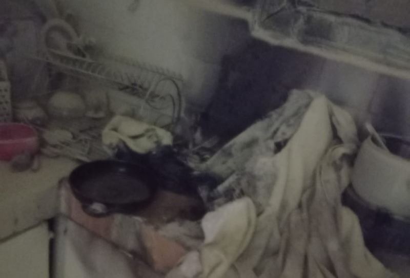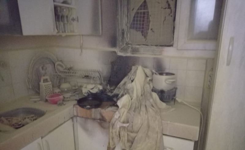 Evin mutfağında çıkan yangında bazı eşyalar yanarak zarar gördü.