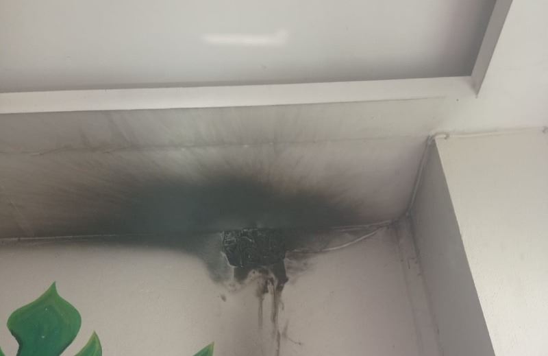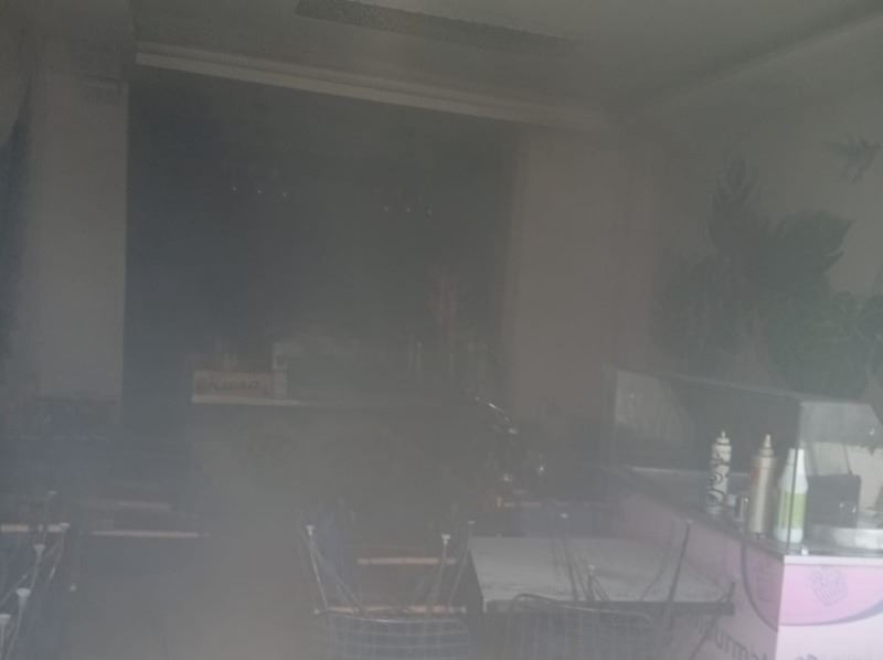 İş yerindeki yangında elektrik tesisatı ve yanının siyah dumandan iş yeri zarar gördü.