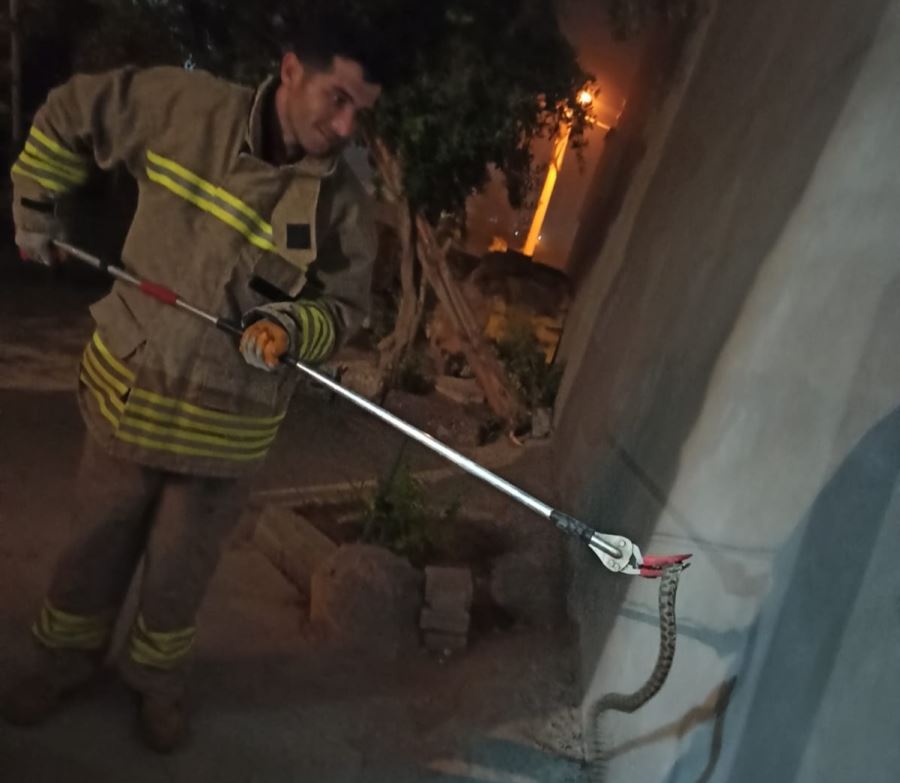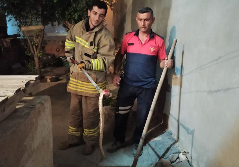 Ekipler, evin avlusuna bir özel aparat ile girdi. Yılanı yakalamaya çalışan itfaiye erlerine saldıran yılan kimseyi ısıtmadan özel aparat ile yakalanarak çuvala koyup doğaya salı verildi.