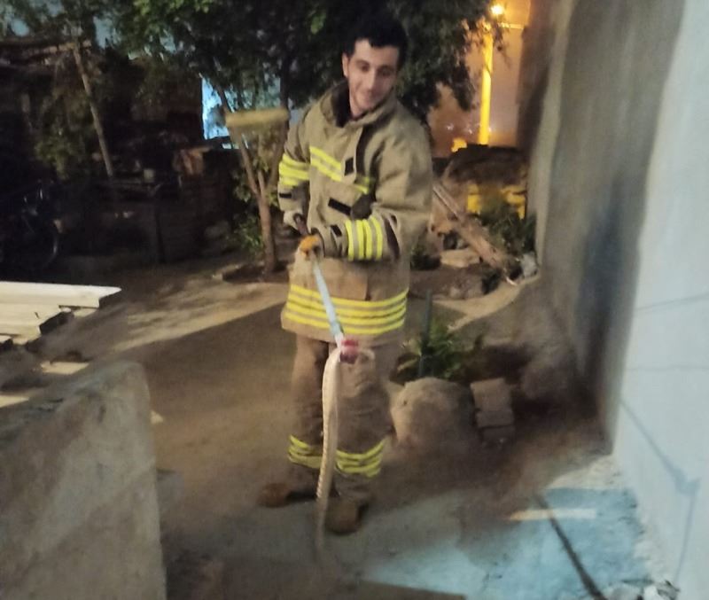 Ev sahibi, kendilerine korku dolu anlar yaşatan yılanın yakalanmasına sevinerek ekiplere teşekkür etti.