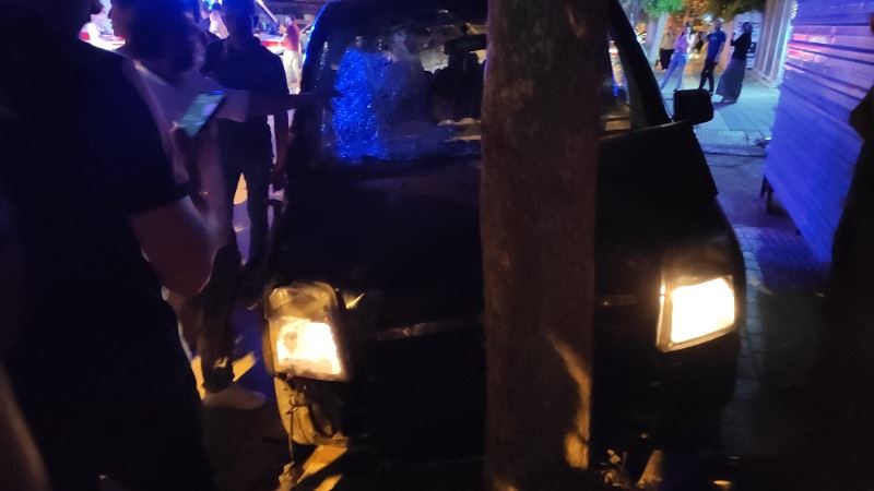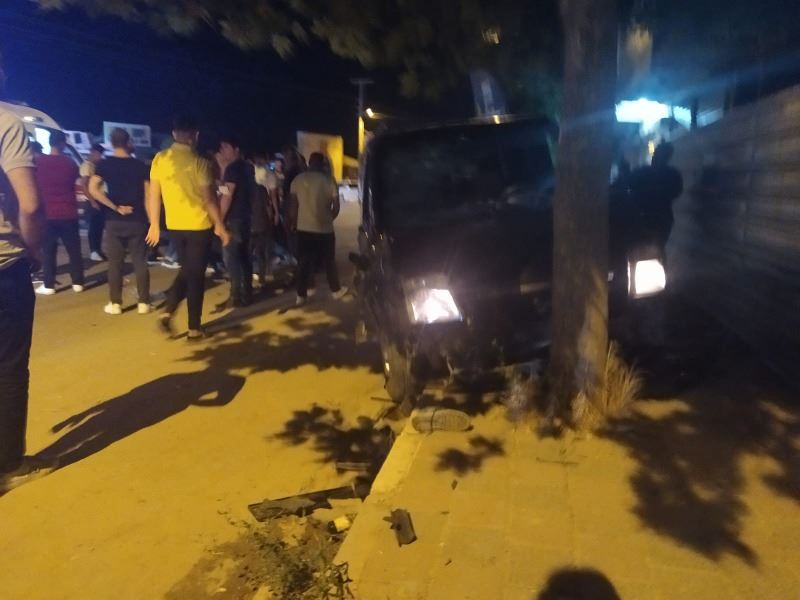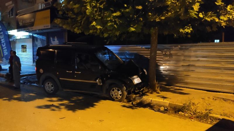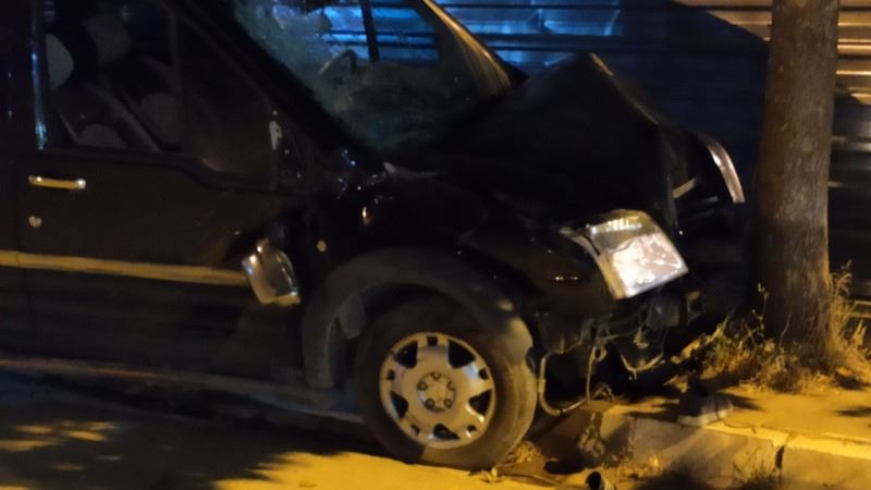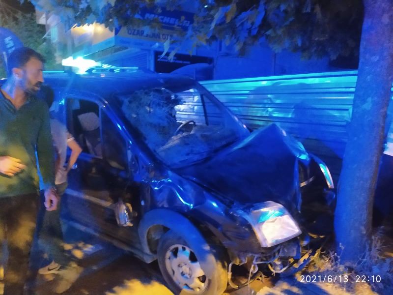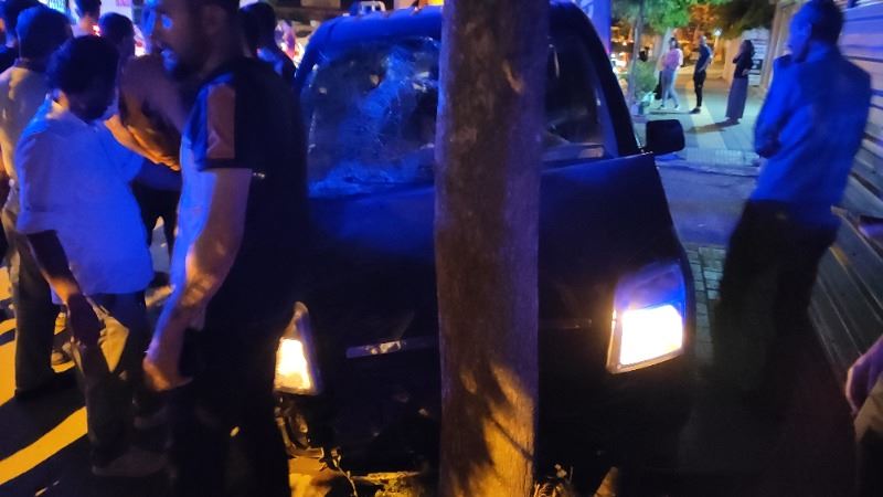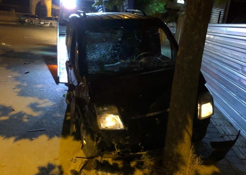 Kazada hafif ticari araç ağaca çarparak durabildi. Motosiklet ise hurdaya döndü.