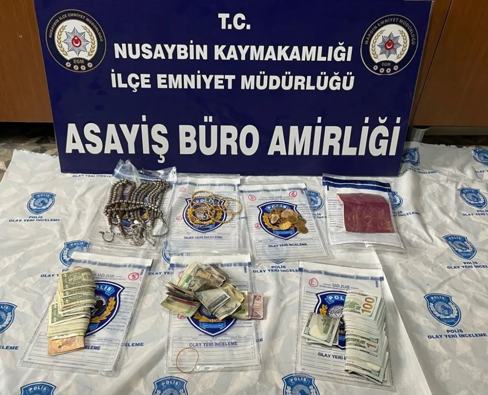 Ahmet AKKUŞ/Mardin'in Nusaybin ilçesinde bir evden çalındıktan sonra hırsızlar tarafından evin avlusuna gömülen ziynet eşyası ve para, polisin başarılı operasyonu ile bulundu.