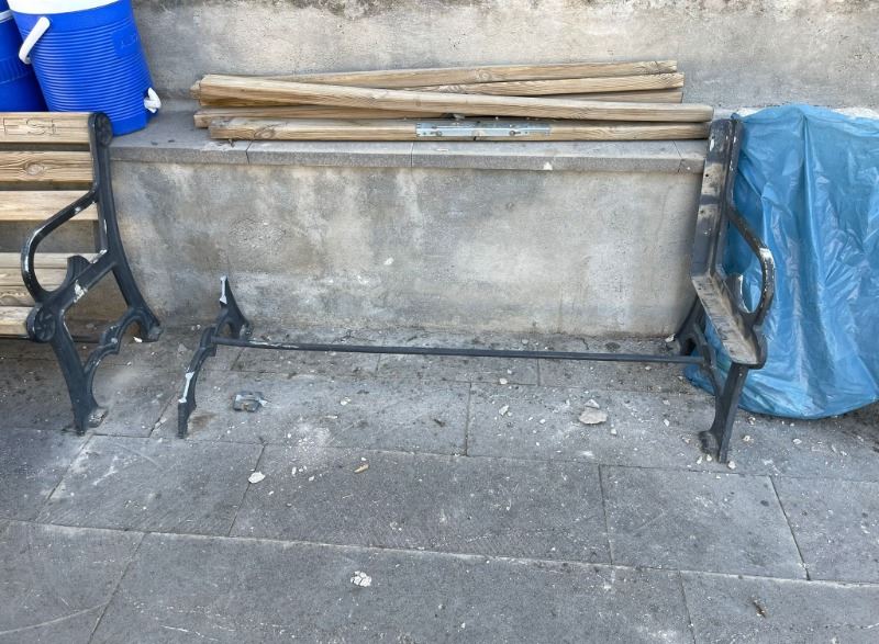 Hırsızlar, camii önünde ve cadde kaldırımı üzerinde bulunan iki dinlenme bankından birinin vidalarını sökerek tahtaları demirden ayırdıktan sonra bankın demir olan bir tarafını kırarak çaldı.