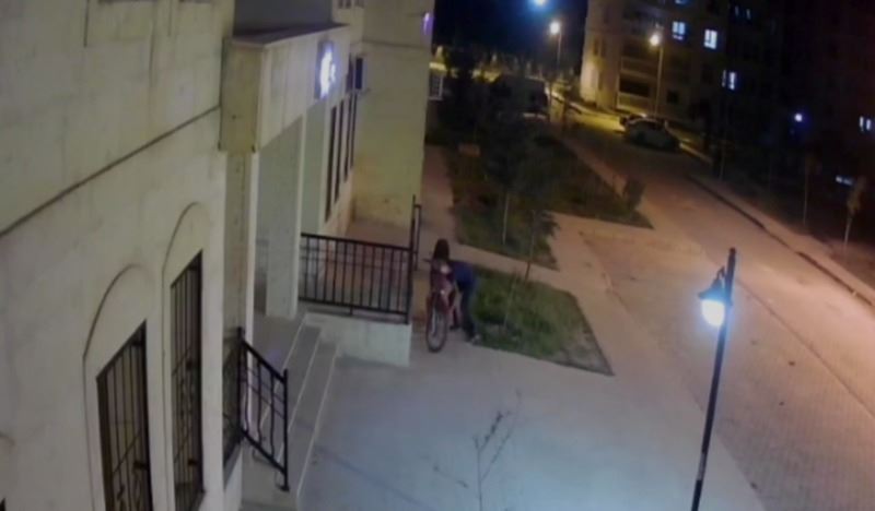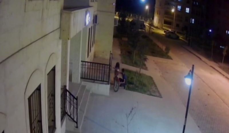 Ahmet AKKUŞ/-MARDİN’in Nusaybin ilçesinde binanın önünde park halindeki motosikletin yanına 2 kez gelen hırsız, motosikletin benzinini boşaltarak o an güvenlik kamerasına böyle yansıdı.