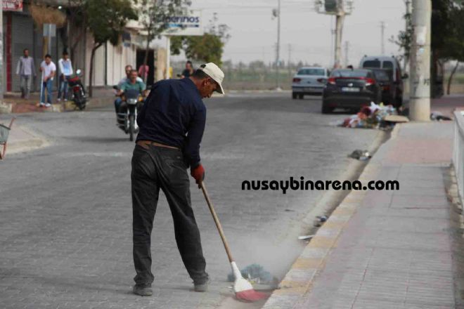 Nusaybin ilçesinde öğlen saatleri itibariyle kent temizliği başladı.