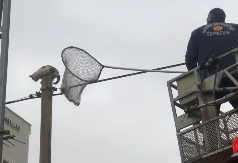 İtfaiye ekipleri bölgeye varınca kediyi bekleyen köpek birkaç metre uzaklaştı. Ekipler, itfaiye merdiveni direk tepesinde mahsur kalan kedinin yanına uzatarak kediyi kurtardı. Kurtarılan kedi serbest bırakılınca uzakta bulunan köpek yine kedinin peşine düştü kovaladı, kedi ise bir evin bahçesine atlayarak kurtuldu. Mahalle sakinleri kediyi kurtaran itfaiye ekiplerine teşekkür etti.