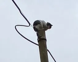 Ahmet AKKUŞ/Mardin’in Nusaybin ilçesinde köpek, kediyi kovalarken kedi korkudan tahta telefon direğine çıkarak tepede oturdu, köpek saatlerce aşağıda kedinin direkten inmesini bekledi.