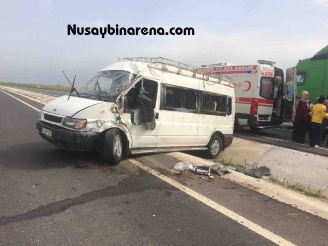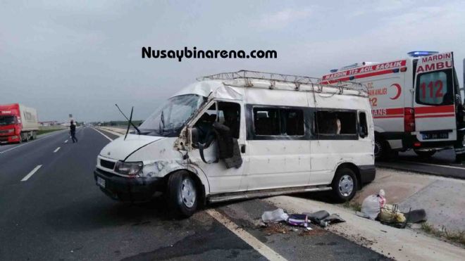 Nusaybin ilçesi ipek yolu üzerinde köy minibüsü devrildi 8 kişi yaralandı.