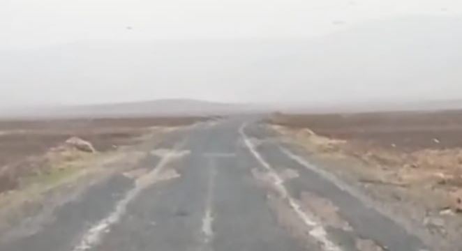 Görüntülerde, köylüler bozuk olan yola beton harcı dökerek düzelttikleri görünüyor.