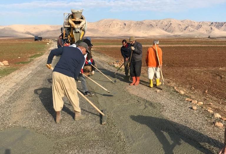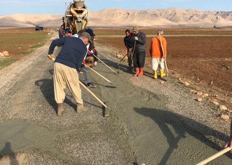 Nusaybin’de köylüler, bozuk yollarına beton dökerek onarmaya çalıştı