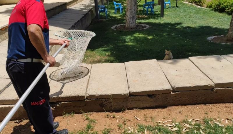 Nusaybin’de mahsur kalan yavru kediler, onları kurtarmaya çalışan güvenlik görevlisini ısırarak yaraladı
