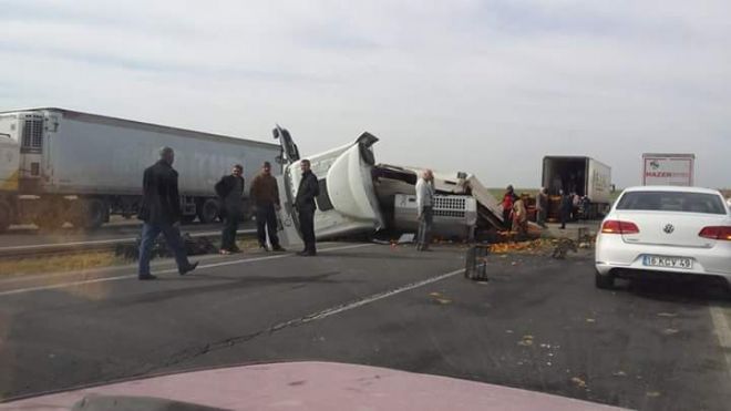 Edinen bilgilere göre, Nusaybin ipek yolu üzeri Mardin üç yolu mevkilerinde sürücünün ve plakası belirlenmeyen mandalina yüklü Tır Nusaybin istikametine giderken direksiyon hakimiyetini kaybederek şarampole yuvarlandı. Kazada tır hurda haline döndü. Sürücü ise hafif yaralı olarak kurtuldu. Tır’ın mandalina yükü bayan işçiler tarafından toplatılarak kasalar halinde bir başka Tır’a yükletildi. Hurdaya dönen tır vinç yardımıyla yoldan çekildi. Kazayla ilgili jandarma ve Trafik ekipleri soruşturma başlattı.-Haber-Ahmet Akkuş