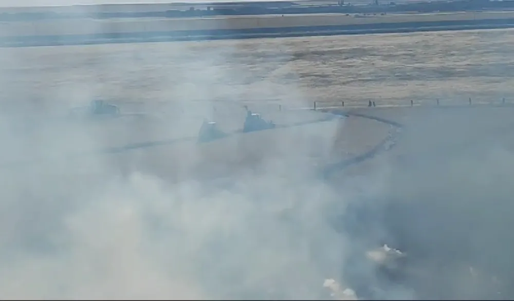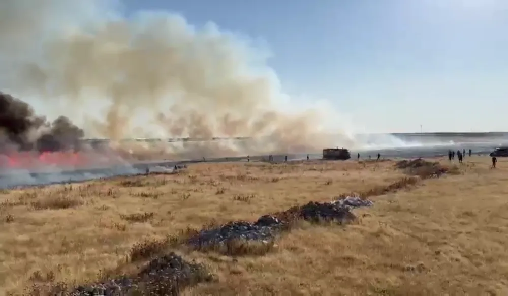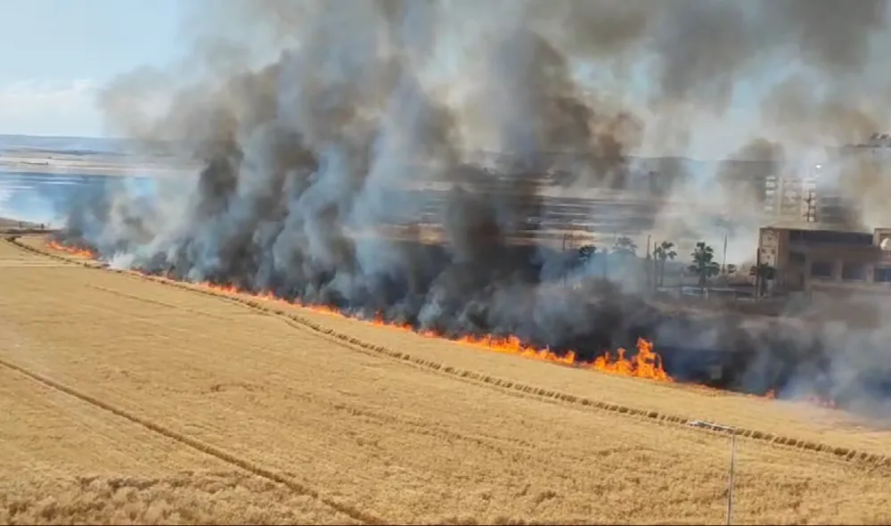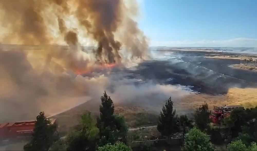 Yangın bölgesine çok sayda itfaiye aracı, İş makinası kepçe, TOMA Polis aracı basınçlı suyla ve vatandaşlar, ellerine aldıkları kürek, çalılarla yangına müdahale edilerek, alevler yerleşim alanlarına sıçramadan kontrol altına alındı. Buğday ekinlerin içindeki yangına kürekle müdahale eden bir kişi son ana yanmaktan koşarak kurtulurken görüntülendi.