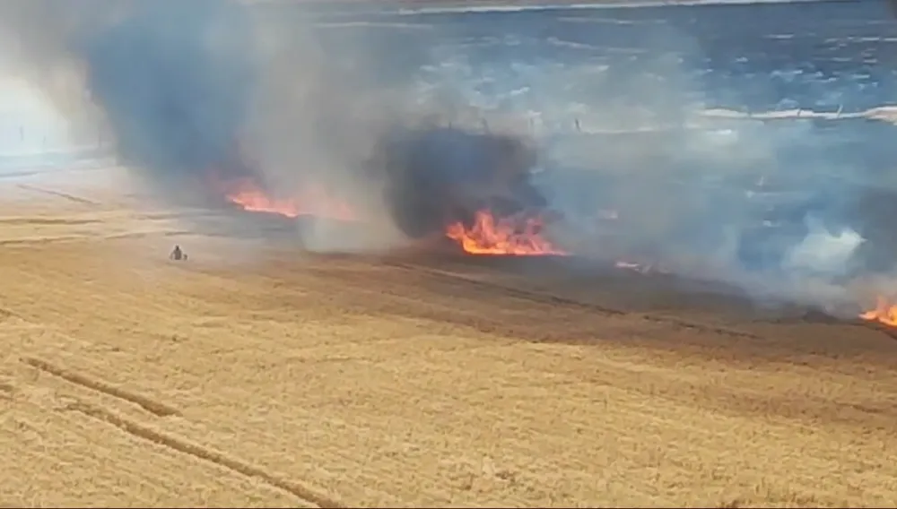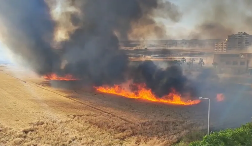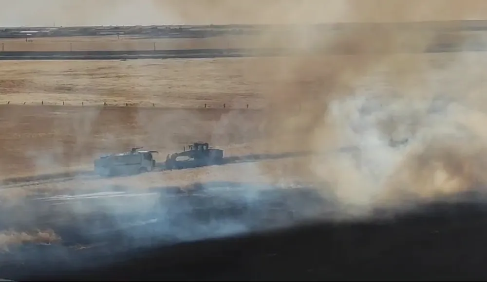 Ahmet AKKUŞ/Mardin’in Nusaybin ilçesi ile Suriye’nin Kamışlı kenti arasındaki mayınlı sınır bölgesinde çıkan yangın buğday ekinlerine sıçradı. Yangına çok sayda itfaiye ve polisin toplumsal müdahale aracıyla müdahale edilerek yerleşim alanlarına sıçramadan söndürüldü. Yangında yaklaşık 30 dönüm buğday ekinleri yandığı öğrenildi.