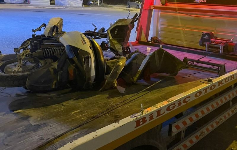 Kazada hurdaya dönen motosiklet çekici yardımıyla bölgeden kaldırıldı.