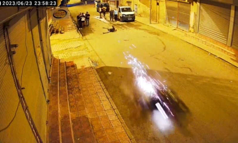 Güvenlik kamerası görüntülerinde, bir grup yaya caddede üzerinde yürürken arkalarından hızla gelen motosiklet bir kişiye çarparak yere düştü, çarpmanın etkisiyle motosiklet yere düşerek sürüklenirken ateş kıvılcımları çıktığı görülüyor. Kazada yaralanan yaya ve motosiklet sürücüsünün yardımına çevredeki vatandaşlar koştuğu görüldü.