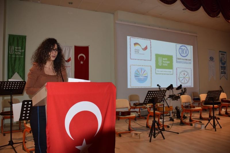 “17 yıldan beri Tılsım Kültür Sanat ve Eğitim Merkezi olarak kültür ve sanat çalışmaları yapmaktayız. Kültür ve sanat çalışmalarımızı daha geniş kitlelere ulaştırabilmek için, bu alanlarda çalışma yapan diğer kurum ve kuruluşlarla ortak çalışmalar yapabilmek ve toplumda sanat bilincini daha da üst kademelere taşıyabilmek adına Uluslararası Müzisyenler, Sanatçılar ve Eğitimciler Federasyonu’nu kurduk. Federasyonumuzun amaçlarından biri, toplumun gelişimini ve ilerleyişini sanat dalları ile sağlamak, bireyleri sanata teşvik ederek topluma kazandırmaktır. Bununla beraber sanat ile uğraşan herkesi bir araya getirip, toplumdaki sanat anlayışını geliştirmek, sanatçı arkadaşlarımızın sorunlarını çözebilmektir. Federasyonumuzun temel ilkelerinden biri de, topluma fayda sağlayan faaliyetler gerçekleştirmektir. Federasyonumuzun koordinatörlüğünde hazırlanan Türkiye Kalkınma Vakfı ve Alman İşbirliği destekleriyle ayrıca Tılsım Kültür Sanat ve Eğitim Merkezi ev sahipliğinde kültürlerin ahengi projesi finali huzurunuzdadır.”diye konuştu.