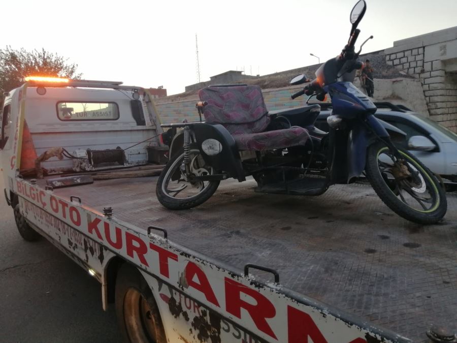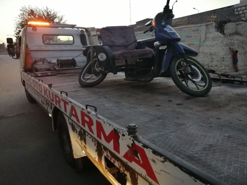 Kullanılamaz hale gelen motosiklet çekici yardımıyla bölgeden kaldırıldı.