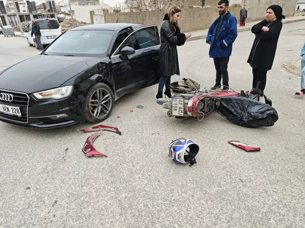 Sürücülerin isimleri öğrenilemeyen 47 AEN 228 plakalı otomobil ile 47 ACJ 158 plakalı motosikletin çarpışması sonucu yaşanan kazada, motosiklet sürücüsü hafif şekilde yaralandı.