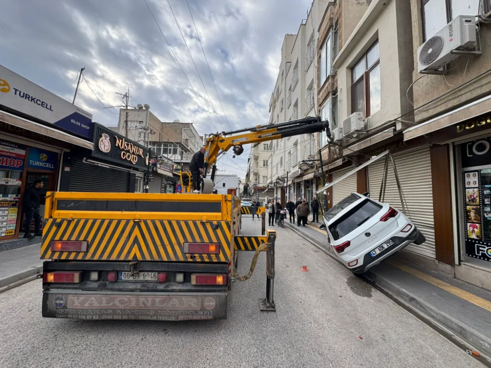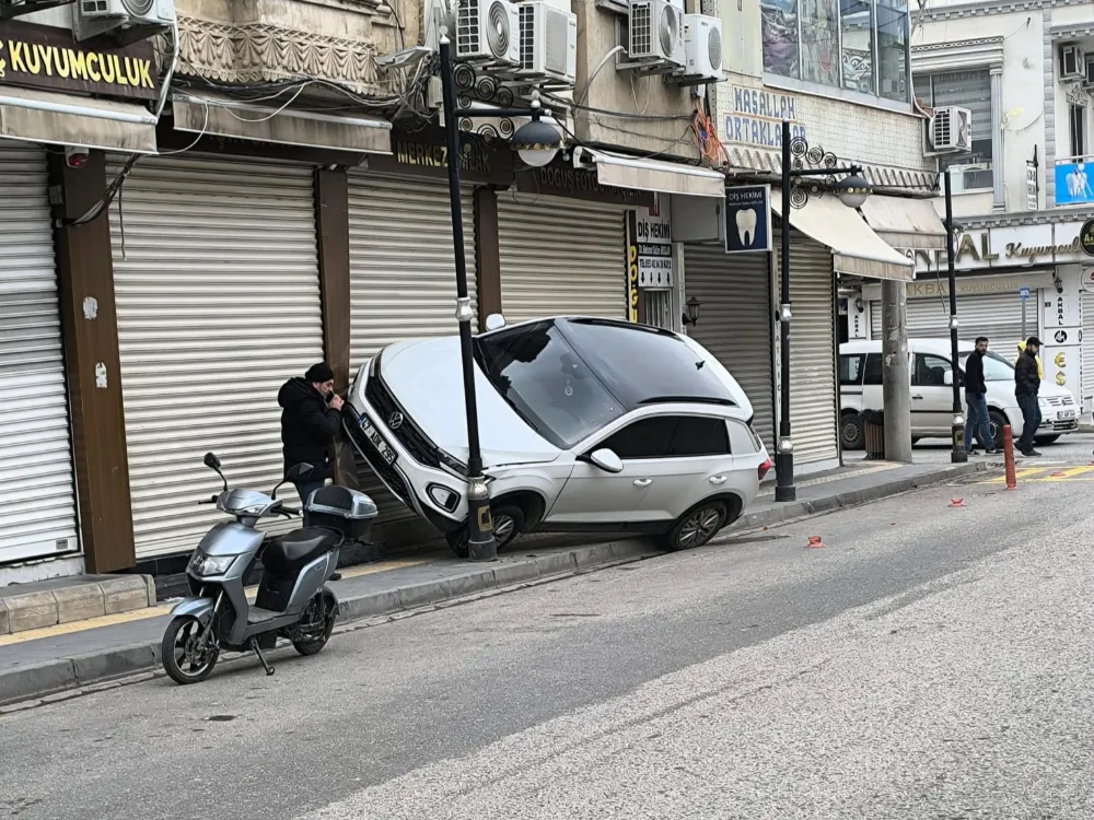 Sürücüsünün ismi henüz öğrenilemeyen 47 ADK 295 plakalı otomobil, sürücüsünün direksiyon hâkimiyetini kaybetmesi sonucu kaldırıma çıkarak yan vaziyette havada durdu.