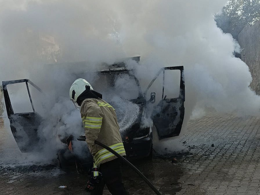 Haber: Ahmet AKKUŞ-Mardin’in Nusaybin ilçesinde park halindeki bir kamyonet, sürücüsünün araca binip hareket etmesinden kısa bir süre sonra alev alarak yandı. Kısa sürede alev topuna dönen araç, itfaiye ekiplerinin müdahalesiyle söndürüldü.