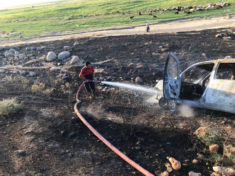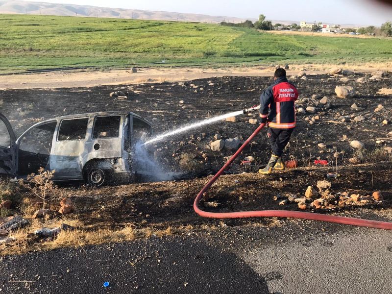 Nusaybin’de seyir halindeki araç yandı