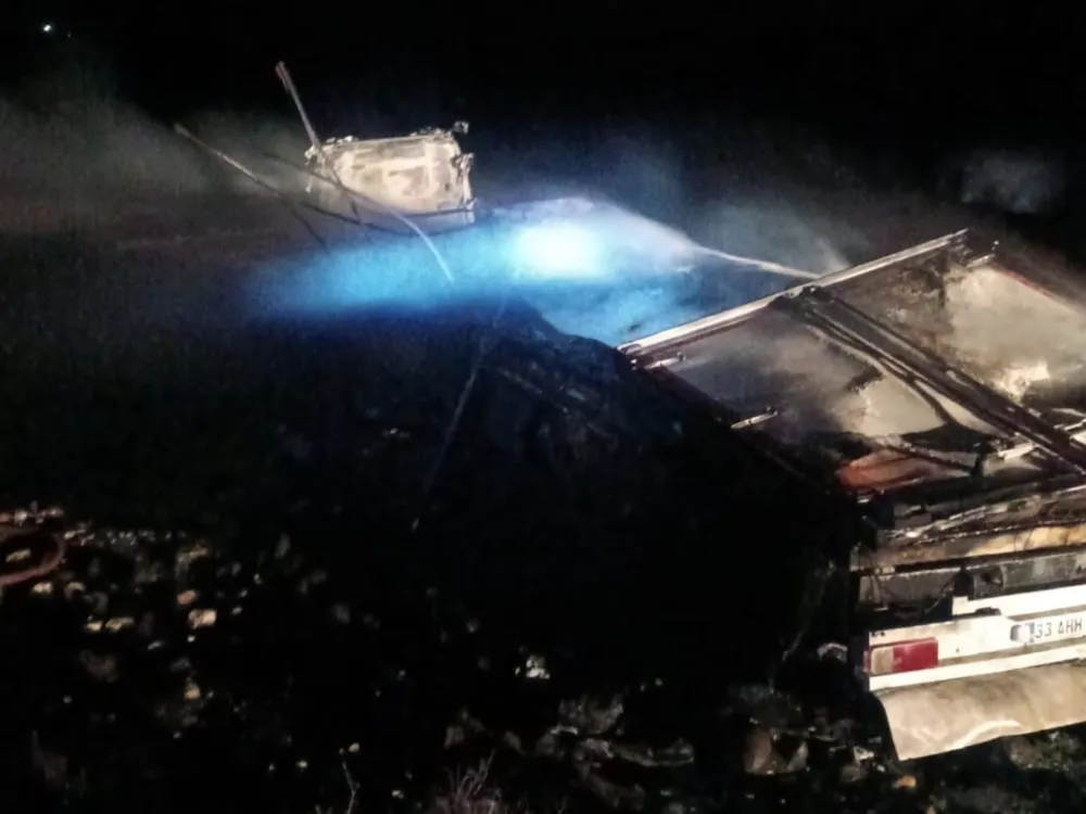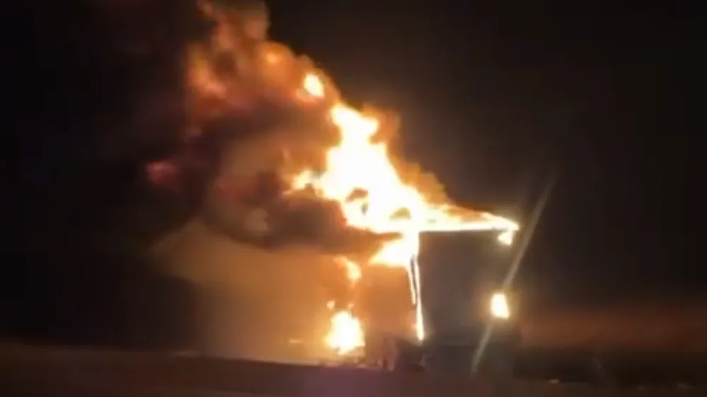 Haber: Ahmet AKKUŞ -Mardin’in Nusaybin ilçesi uluslararası İpekyolu üzerinde seyir halindeki boş TIR, alev alarak yandı. Yangında ölen ya da yaralanan olmazken, araçtan geriye demir iskeleti kaldı.