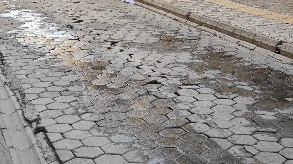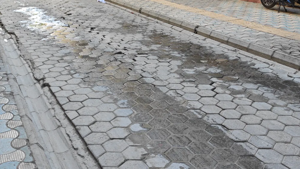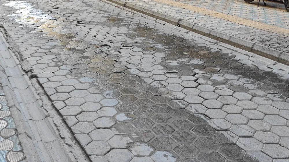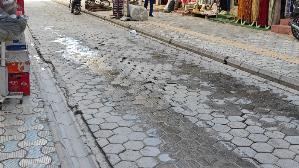 Nusaybin Posta Sokak’ın parke taşlarının altına giren kirli su nedeniyle araçlar geçerken su fışkırıyor ve yoldan geçen vatandaşların elbiseleri çamur içinde kalıyor. Sokak zemininin engebeli ve bozuk olmasına rağmen, vatandaşlar belediye ekiplerinin sorunu görmezden geldiğini belirtiyor.