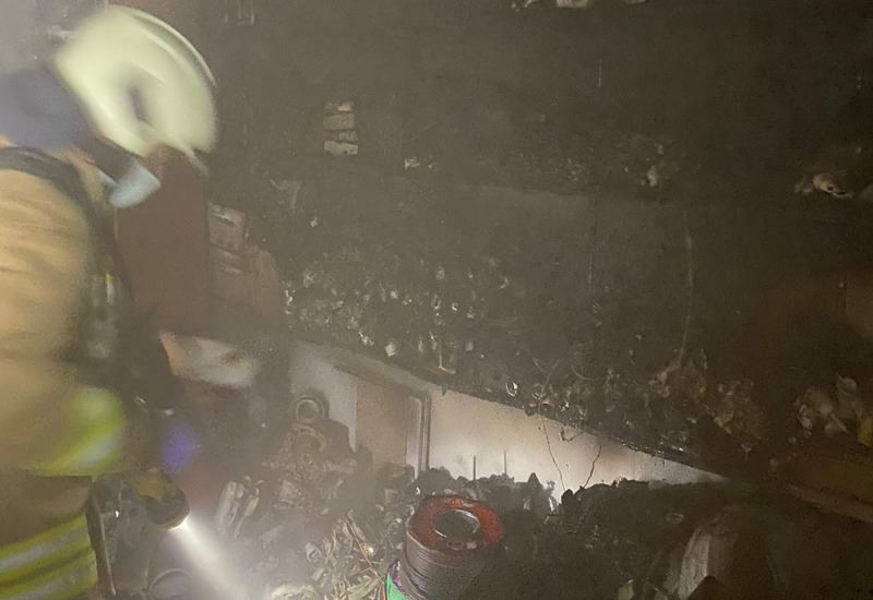 Nusaybin’de Su ve Elektrik tesisatı dükkânında yangın çıktı