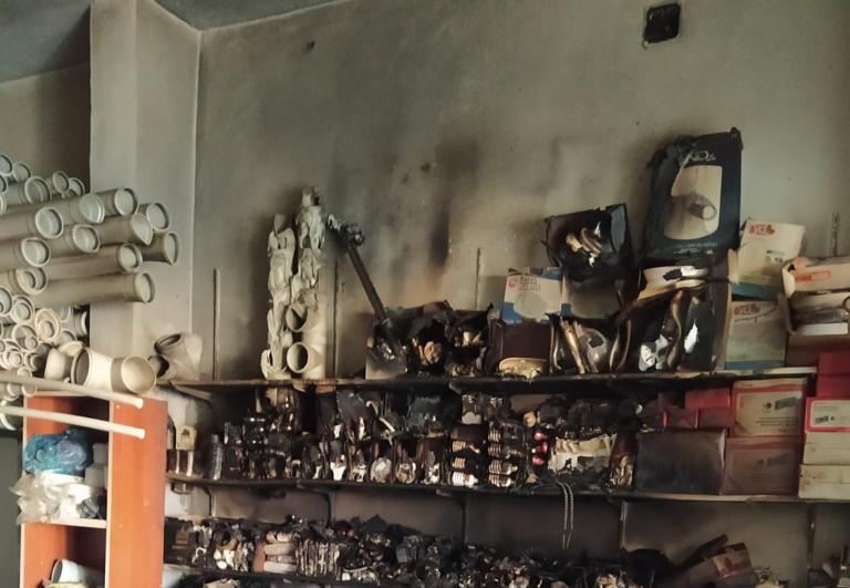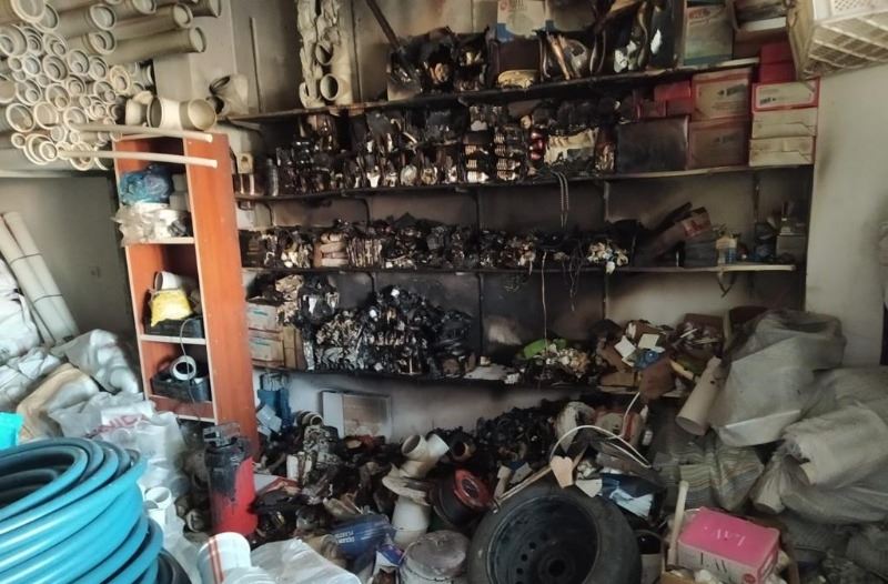 Ahmet AKKUŞ/Mardin’in Nusaybin ilçesinde Su ve Elektrik tesisatları satan iş yerinde çıkan yangında iş yeri kullanılmaz hale geldi.