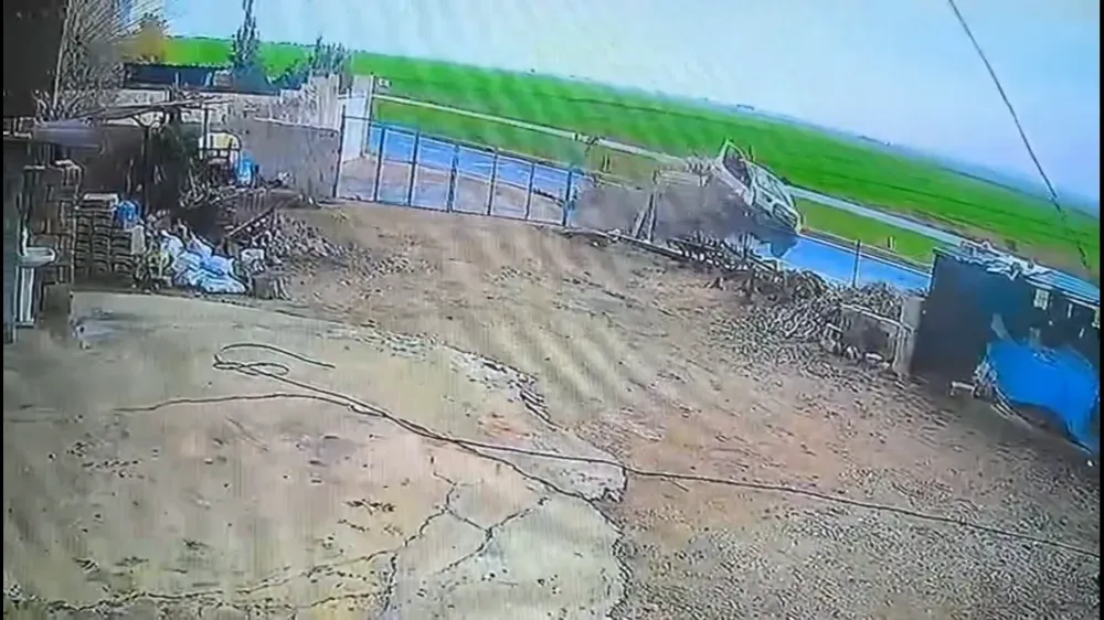 Sürücüsünün ismi öğrenilemeyen 16 ALT 855 plakalı, Mısır ekim mibzeri yüklü kamyonet kontrolden çıkarak yoldan savruldu. Kamyonetin savrulduğu anlar çevredeki bir güvenlik kamerasına da yansıdı.