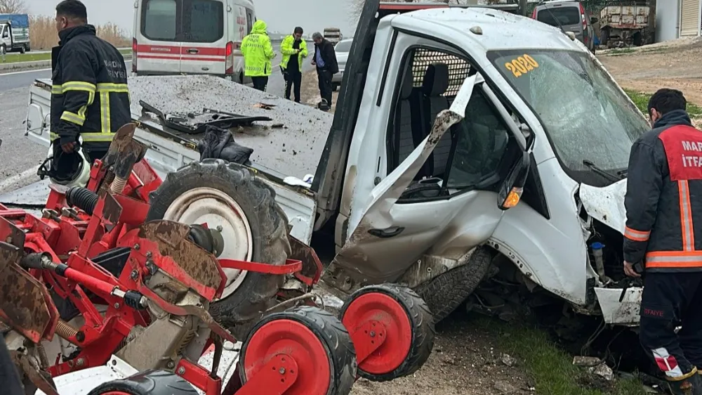 Haber: Ahmet AKKUŞ/Halil Akbalık-Mardin'in Nusaybin ilçesinde tarım makinası yüklü kamyonetin kontrolden çıkarak yoldan savrulması sonucu meydana gelen trafik kazasında 3 kişi yaralandı.