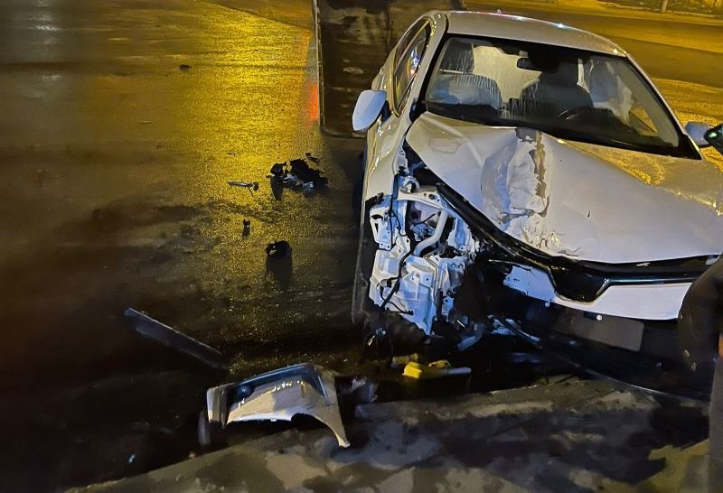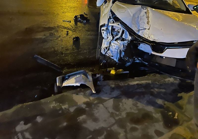 Sürücüsünün ismi ve plakası öğrenilemeyen otomobil seyir halindeyken direksiyon hakimiyetini kaybederek yol kenarındaki kaldırıma çarparak durabildi. Kazada 1 kişi yaralandı.