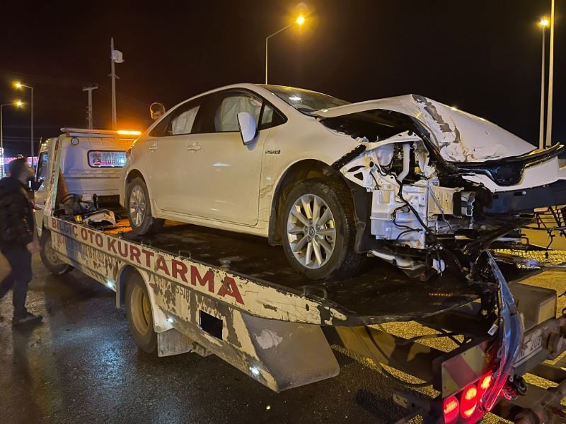 Kazanın etkisiyle kullanılamaz hale gelen otomobilin enkazı araç çekicisi yardımıyla bölgeden kaldırıldı.