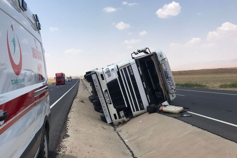 Nusaybin’den Cizre ilçesi istikametine giden 25 yaşındaki Veysel Koçak, yönetimindeki 27 AIB 885 plakalı halı yüklü TIR, ile seyir halindeyken direksiyon hakimiyetini kaybetmesi sonucu yol ortasındaki kanala devrildi. Kazada sürücü Veysel Koçak yaralandı.