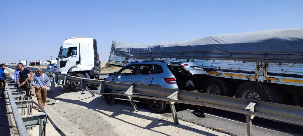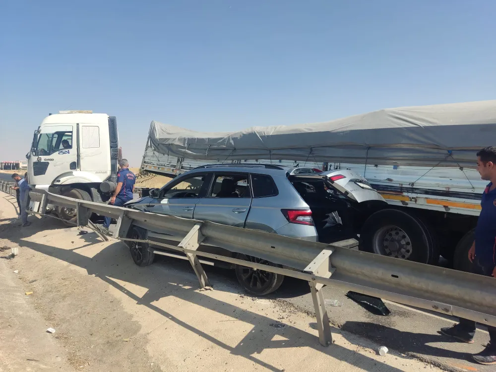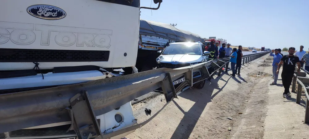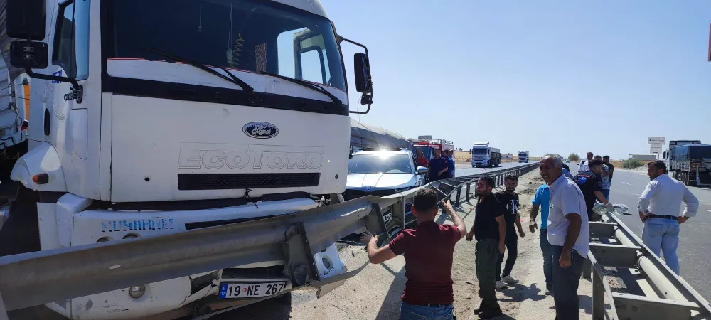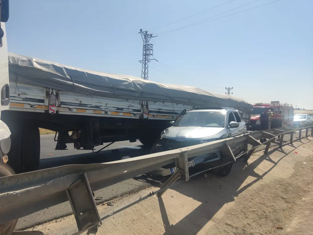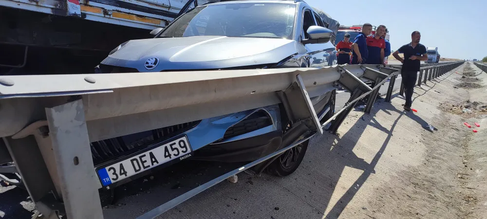 Sürücülerin ismi öğrenilmeyen 19 NE 267 plakalı Tır ile aynı yöne giden 34 DEA 459 plakalı otomobille yandan çarparak demir bariyerlere sıkıştırarak durabildi. Kazada otomobil içinde bulunan 2 kişi yaralandı.