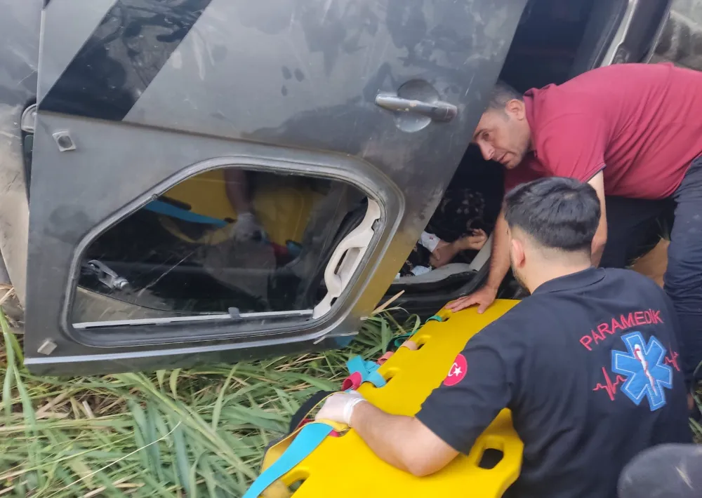 Ters duran otomobildeki yaralılara ilk yoldan geçen sürücüler, köylüler ve itfaiye ekiplerin yardımıyla araçtan çıkarıldı.