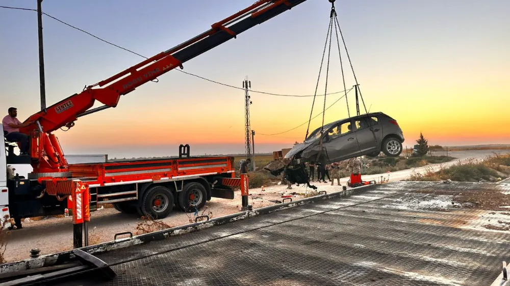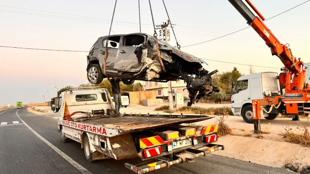 Kazada hurdaya dönen otomobil, vinç ve çekici yardımıyla yoldan kaldırıldı.