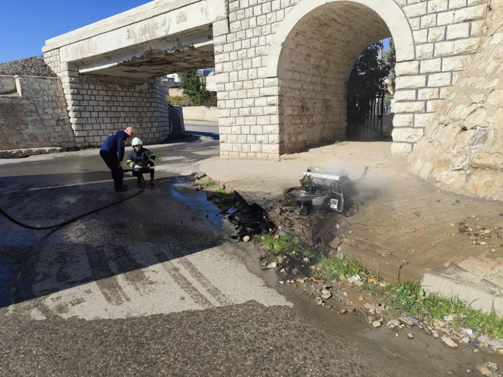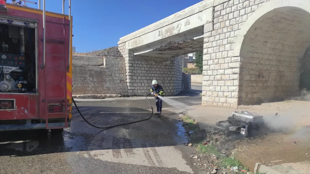 İhbar üzerine olay yerine itfaiye ve polis ekipleri sevk edildi. İtfaiye ekipleri yanan motosikleti kısa sürede söndürdü.