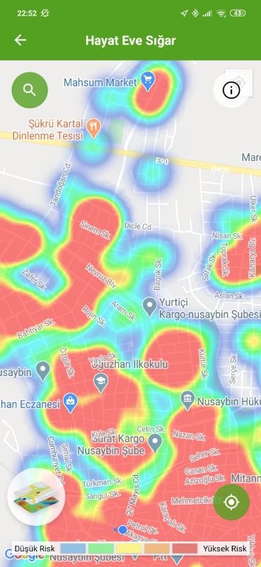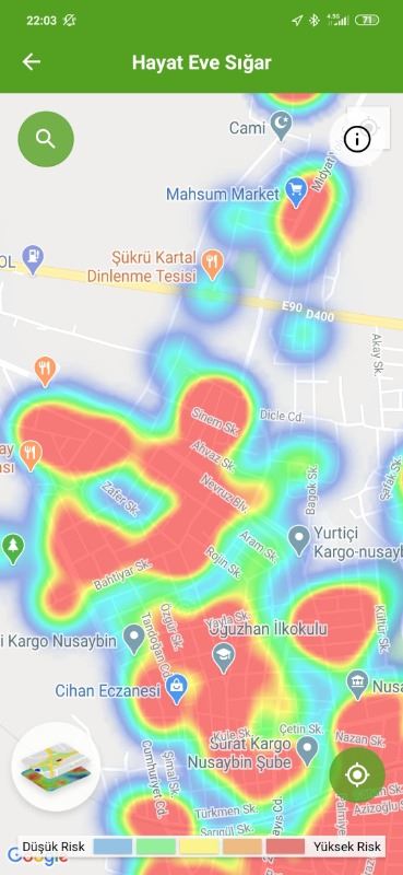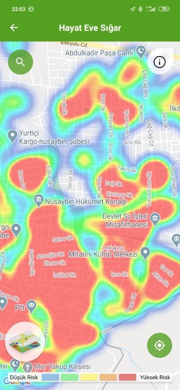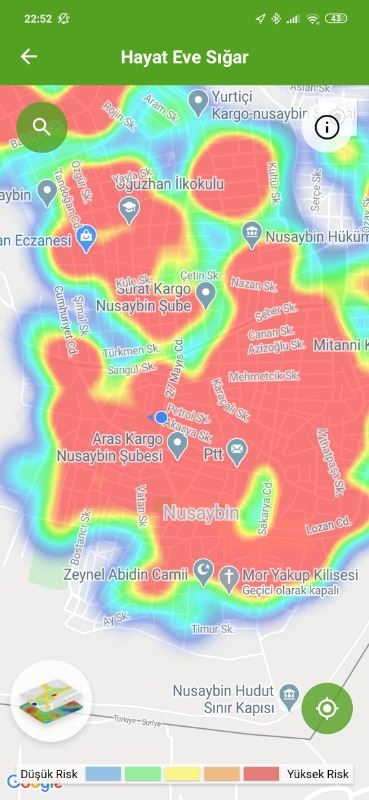 Sağlık Bakanlığına bağlı Hayat Eve Sığar (HES) uygulaması üzerinden Nusaybin'de ve köylerde gün gün yeni tip koronavirüsün (Kovid-19) nasıl yayıldığı haritada ilçenin hemen hemen tamamı kırmızı görünüyor. Bugün bir vatandaşımız Kovid-19 hastalığından vefat ederek defin edildiği öğrenildi.