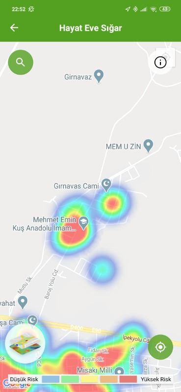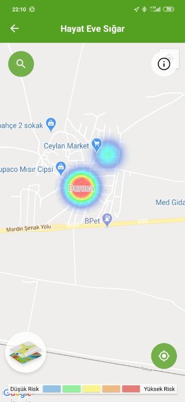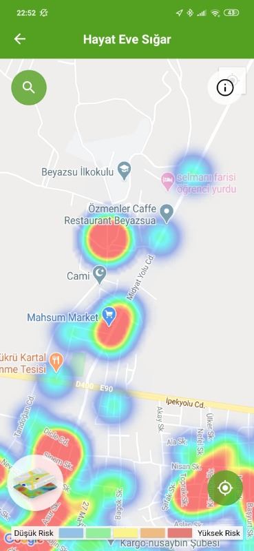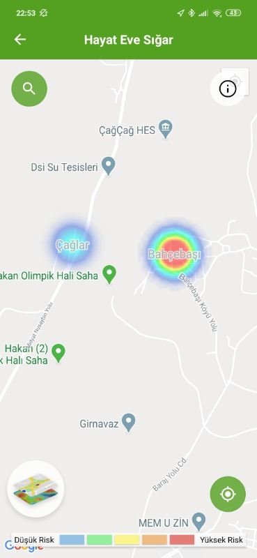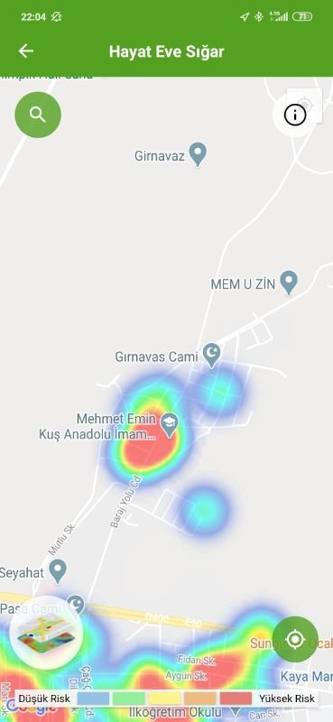 24 Haziran tarihin HES ekran görüntülerine göre, ilk kırmızı bölge Abdülkadir Paşa Mahallesi Çağ Çağ caddesi kenarından başladığı görüldü.