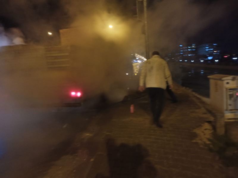 Ahmet AKKUŞ/SABAH-Mardin’in Nusaybin ilçesi uluslararası İpekyolu’nda seyir halindeki TIR’ın arka Dorsa tekerlek baladaları yanmaya başladı. İhbar üzerine kısa sürede bölgeye giden itfaiye ekipleri yangına müdahale ederek TIR’ı tamamen yanmaktan kurtardı.