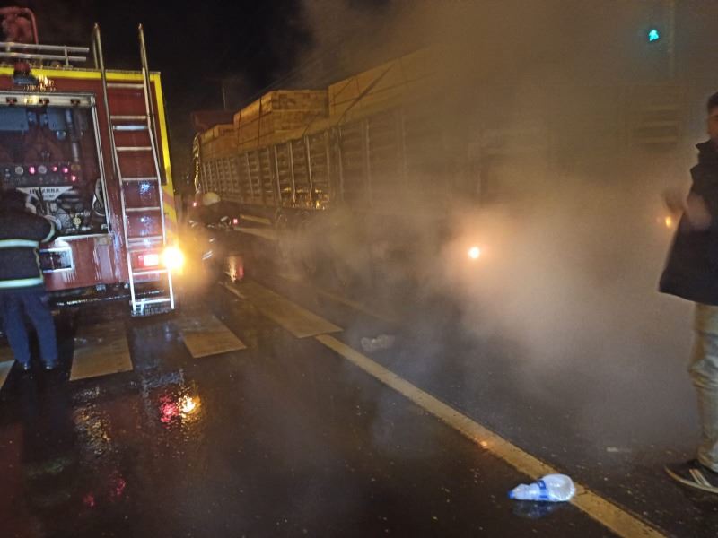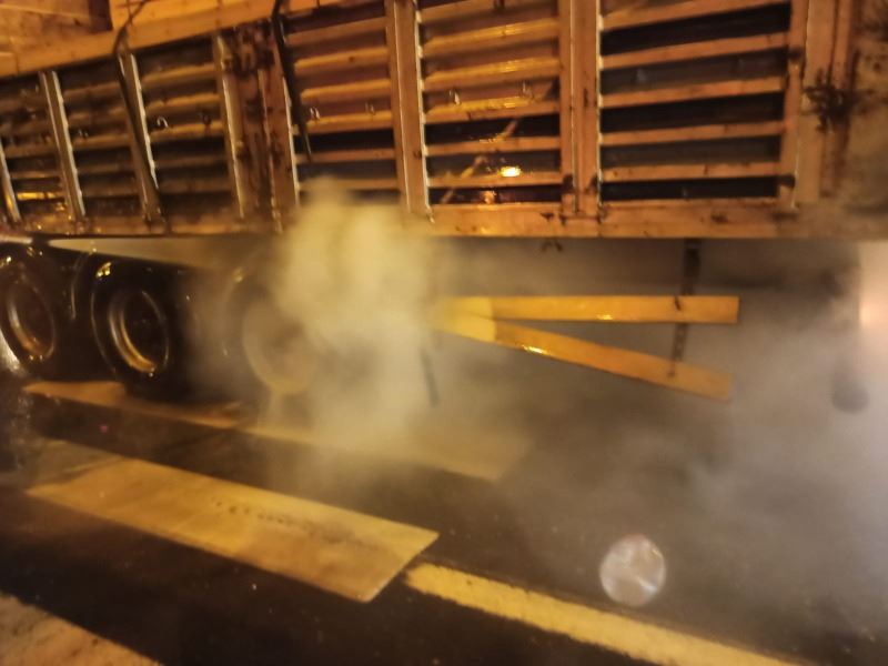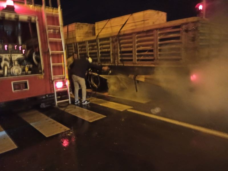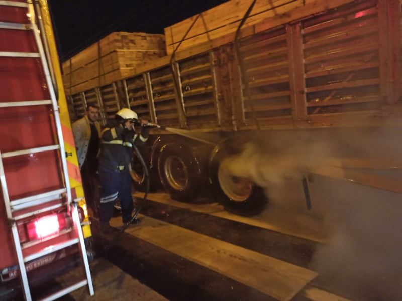 Yangında TIR’ın 2 tekerlek balataları kullanılamaz hale geldi.
