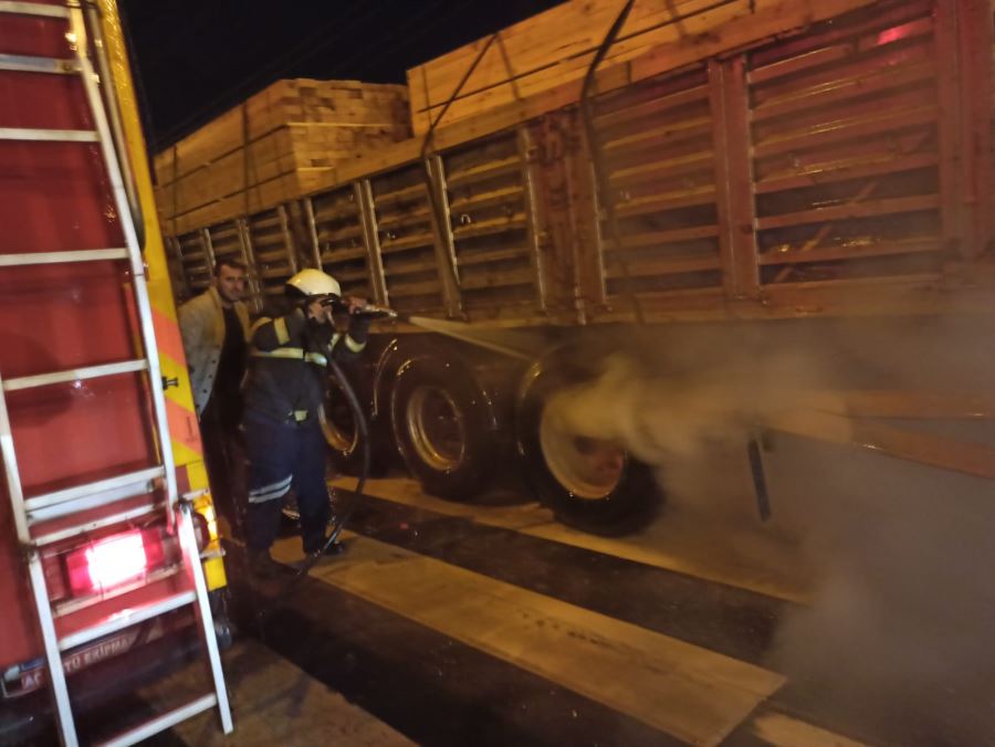 Nusaybin’den Şırnak’ın Cizre ilçesi istikametine giden M. Veysi Cebe yönetimindeki 41 AN 739 plakalı, kereste yüklü TIR ile seyir halindeyken trafik ışıkları kırmızı yanınca firene basan sürücü dikiz aynasından Dorsa lastiklerinden duman çıktığını gördü. Sürücü Cebe, araçtan inerek lastiklerinin yandığını görünce 112 Mardin Büyükşehir Belediyesine bağlı Nusaybin İtfaiye ekiplerine haber verdi. Haber verilmesi üzerine bölgeye gelen İtfaiye ekipleri yanan araç tekerleklerine tazikli suyla müdahale ederek TIR’ı tamamen yanmaktan kurtarıldı.