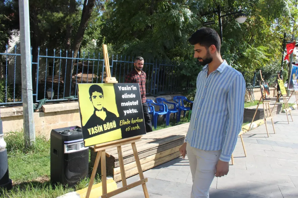 “Nusaybin’de açılan resim sergisi, 6-8 Ekim'de PKK/HDP saldırılarında vahşice katledilen Yasin Börü ve arkadaşlarını yad etmek amacıyla kuruldu.”