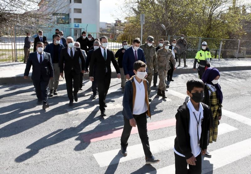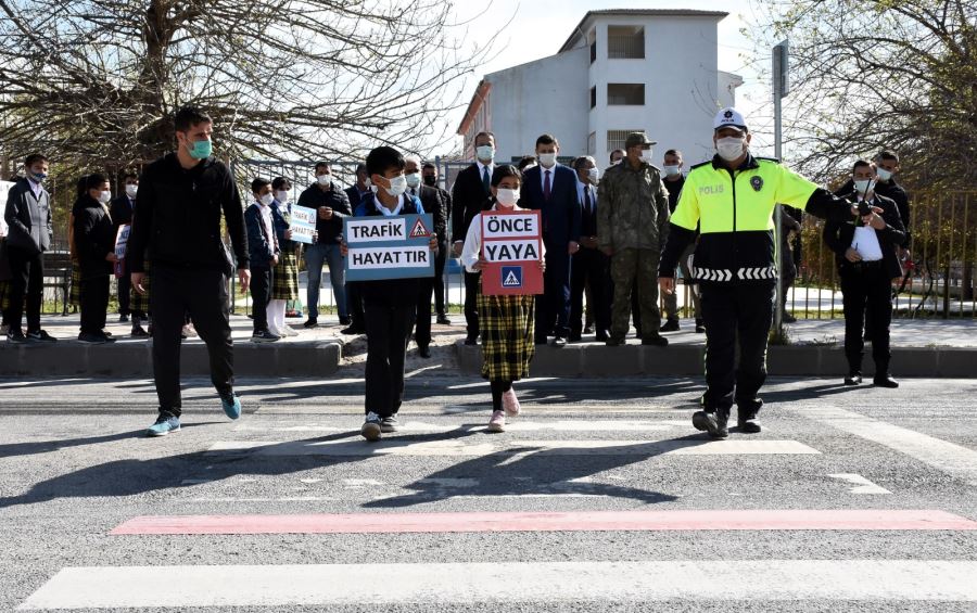 Trafik Polisi Görevlileri tarafından yapılan bilgilendirmeden sonra Kaymakam ve Belediye Başkan Vekili Yalçın, öğrencilere kırmızı düdük ve broşür dağıttı. Daha sonra protokol üyeleri ve öğrenciler yaya geçidin kullanarak yolun karşısına geçti.