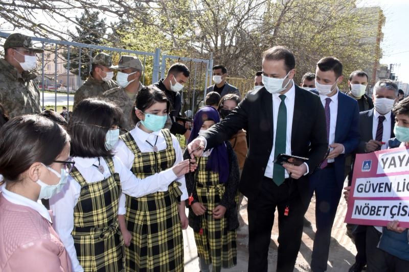 Kaymakam ve Belediye Başkan Vekili Yalçın, Garnizon Komutanı P. Bnb. Yılmaz ve Cumhuriyet Başsavcısı Can, sürücülere broşür dağıtarak yaya önceliği konusunda uyarılarda bulundu.