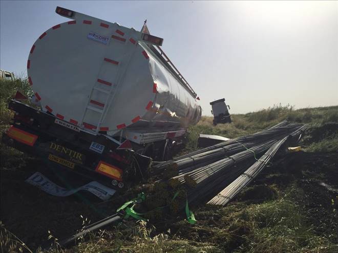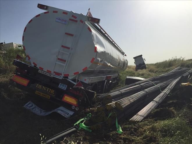 Nusaybin`de Demir ve Tanker Yüklü TIR Devrildi